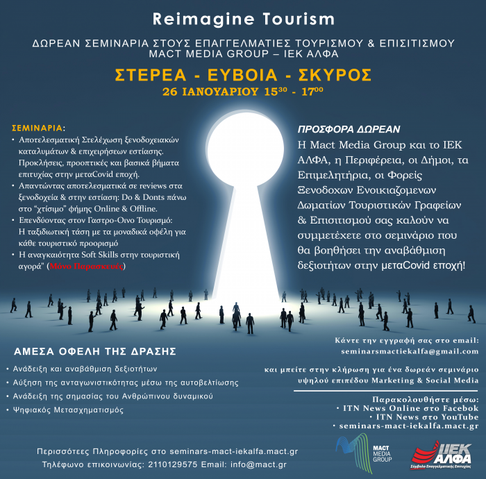 Σήμερα 26 Ιανουαρίου πραγματοποιείτε το 2ο Σεμινάριο του Reimagine Tourism