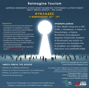 Σήμερα 4 Φεβρουαρίου πραγματοποιείτε το 9ο Σεμινάριο του Reimagine Tourism αλλά τώρα στην περιφέρεια των Κυκλάδων. Τα σεμινάρια θα είναι…